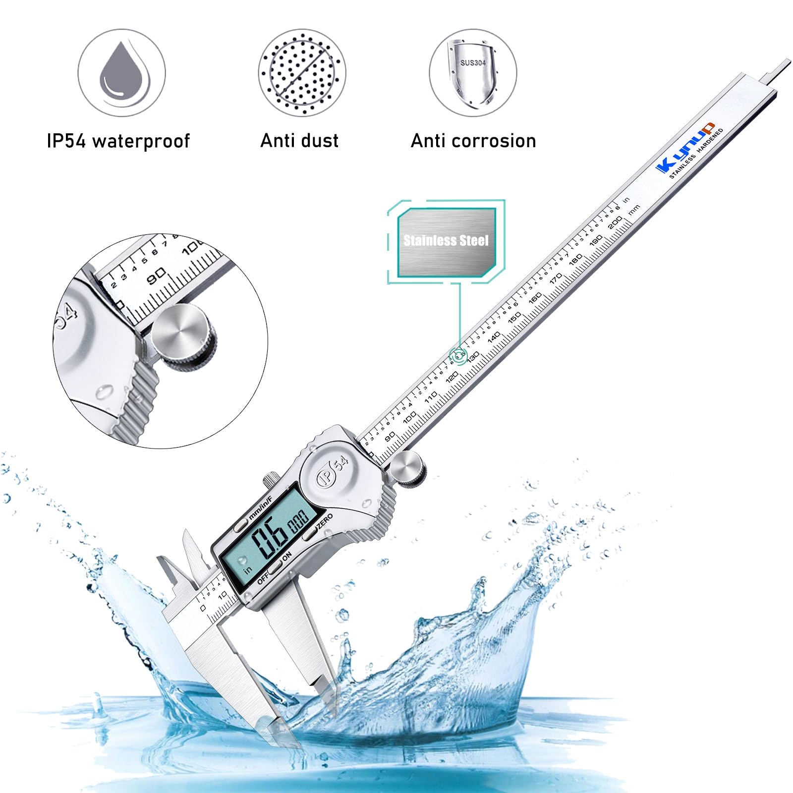 Kynup Digital Caliper, 8 Inch Caliper Measuring Tool with Stainless Steel, IP54 Splash Proof Protection Design, Easy Switch from Inch Metric Fraction, Large LCD Screen (200mm)