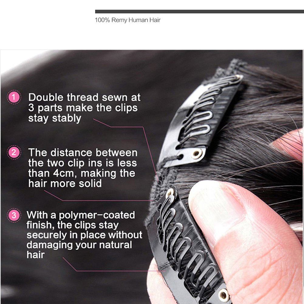 - 【High Quality Human Hair】— Healthy Virgin Healthy Human Hair. They Can Be Dyed, Straightened and Curled Like Your Own Hair. No Tangle! No Shedding! But Please Remember Frequent Styling May Cause Dry or Split. Use Mild Hair Conditioner Can Prolong the Usage of Extensions.