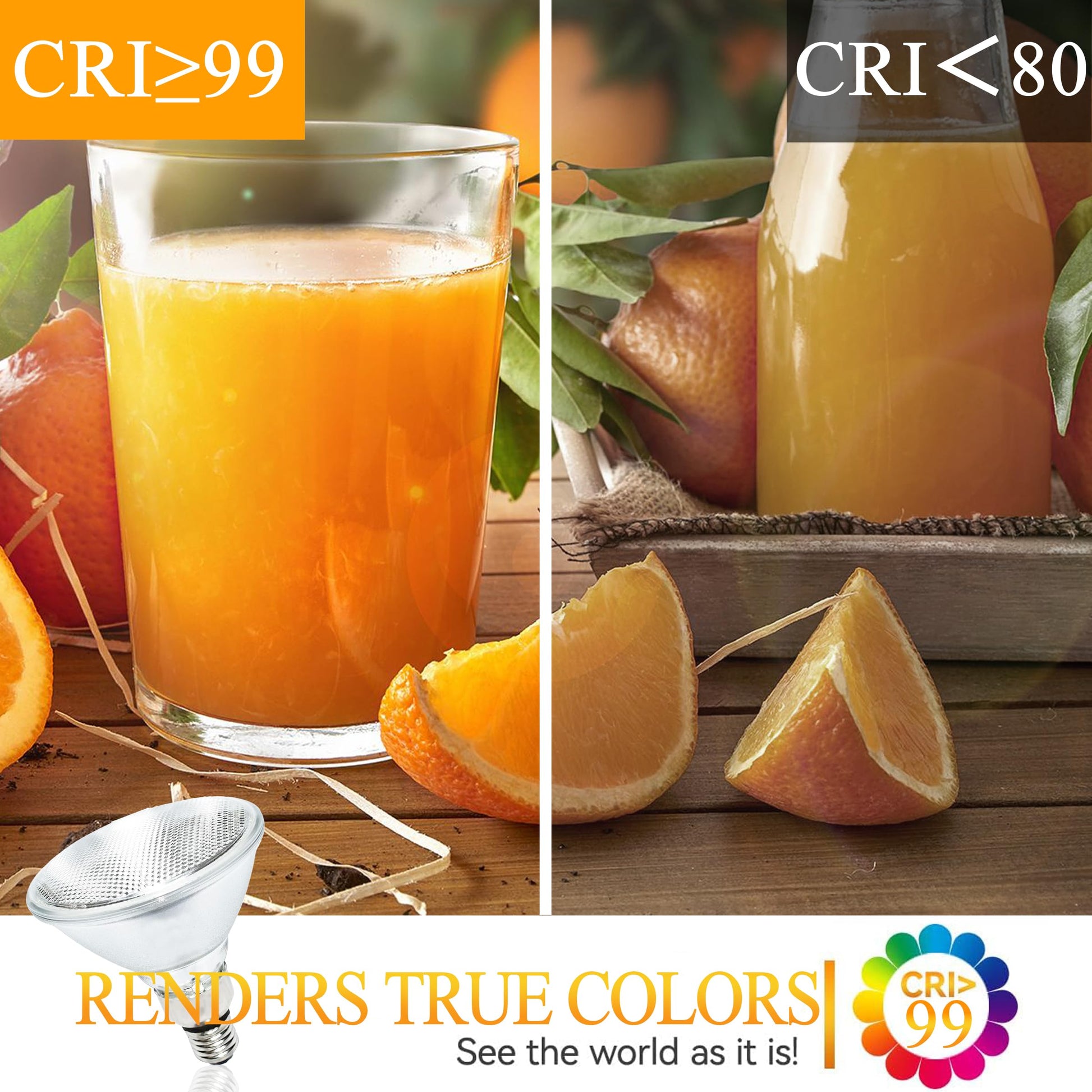 - PAR38 Dimmable: Fully Smooth dimming from 10%-100%, adjust the brightness according to your needs. CRI100 (Color Rendering Index), makes you see the world as it is. No warm-up time, instant-on at full brightness