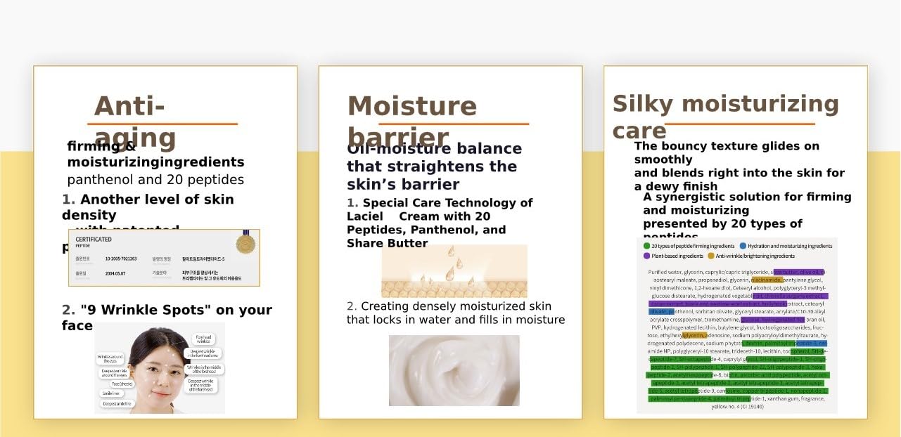 LACHIEL Prestige Peptide Facial Cream 1.69fl.oz (50ml) Panthenol, 20 Peptides, Carnosine, Adenosine, Niacinamide, Anti-aging, Wrinkle improvement, Made in KOREA.