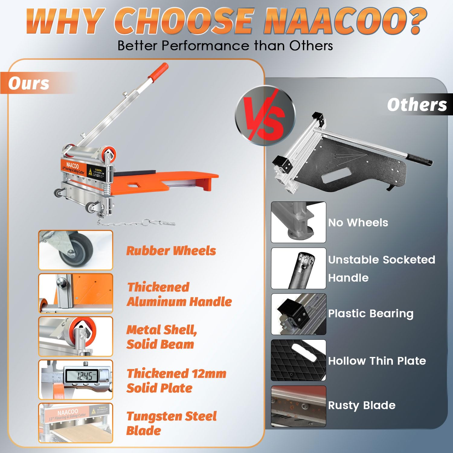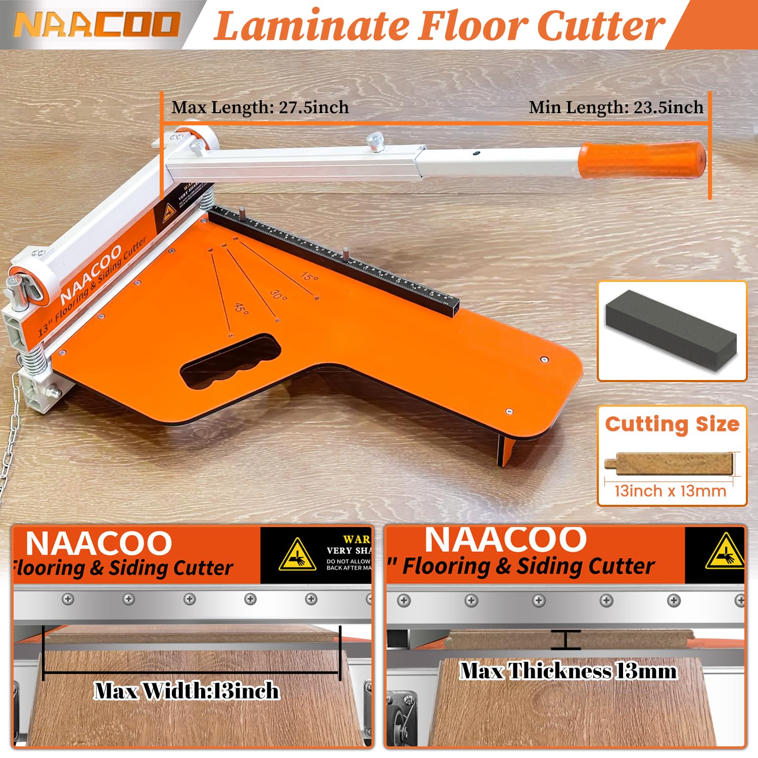- 🏆【NAACOO Laminate Cutter】- Maximum cutting Width - 13 inches, Maximum cutting Thickness - 13 mm. Multi cutting angles - 0°, 15°, 30°, 45°, meet widely needs. It's made of strong aluminum alloy and HDPE. Reusable floor cutting tool. No electricity/No noise/ No dust.