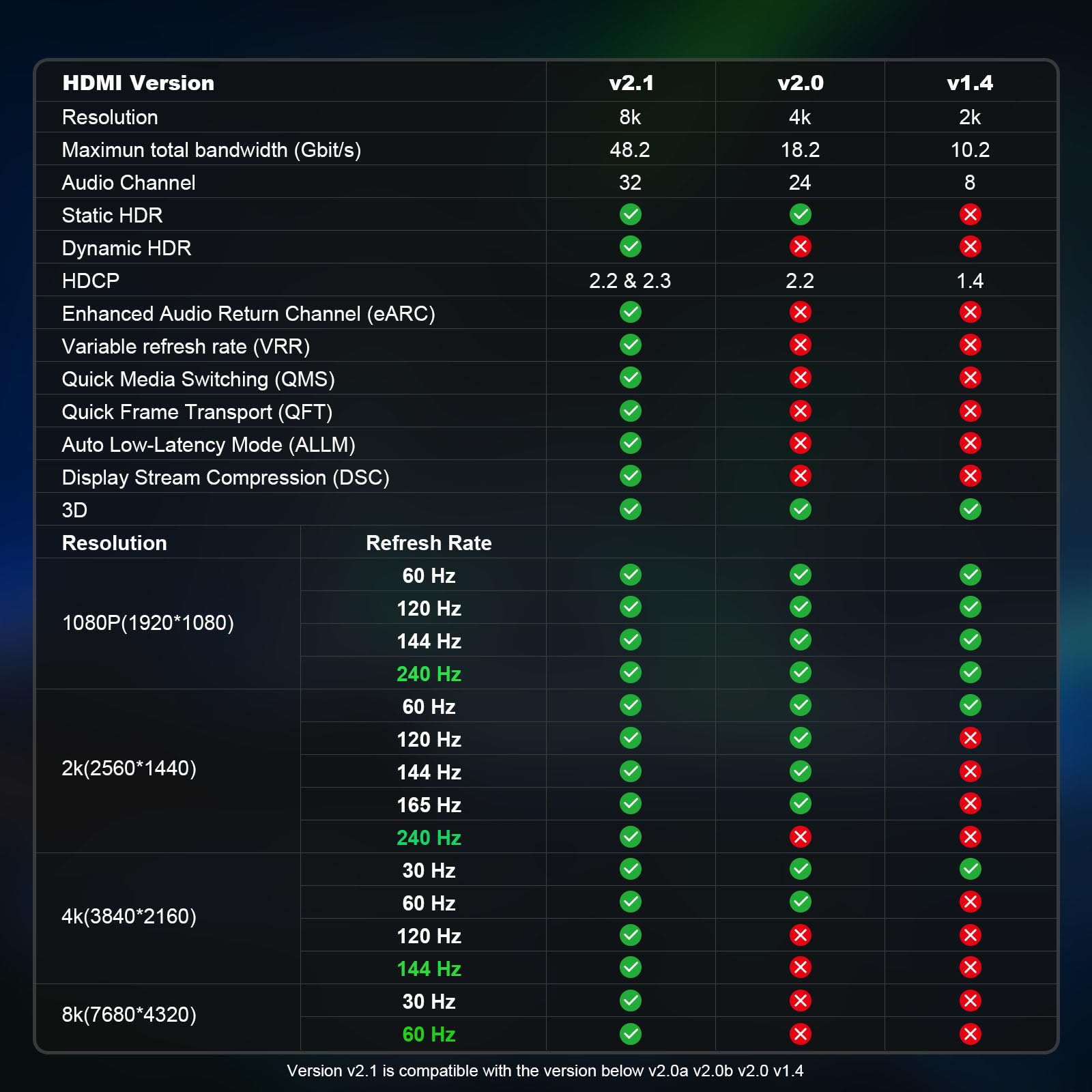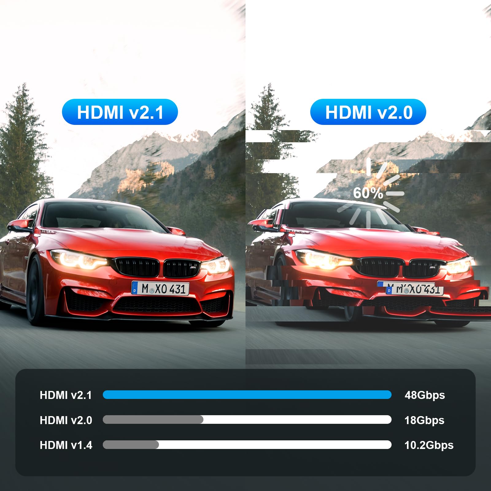 - HDMI cable version 2.1, with a ultra high speed of 48Gbps, so this hdmi cord support 8K@60Hz 4K@120Hz 2K@240Hz max, match most game monitor.