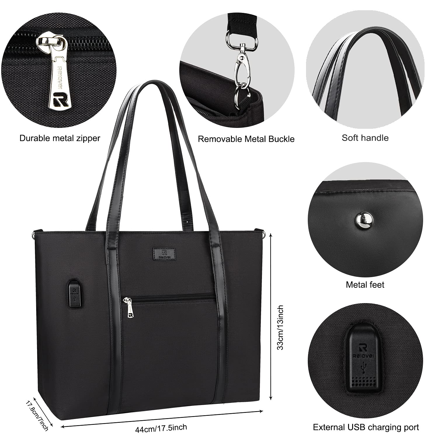 - SIZE & CONVENIENT: Tote bag size is: L 17 inches * W 7 inches * H 13 inches: suitable for 17 inches and smaller laptops, Weight of laptop tote bag:979g , lightweight tote bag for girls to reduce the weight during travel, can be used as handbag, crossbody bag, shoulder bag. It can also be attached to a cart for easy carrying.