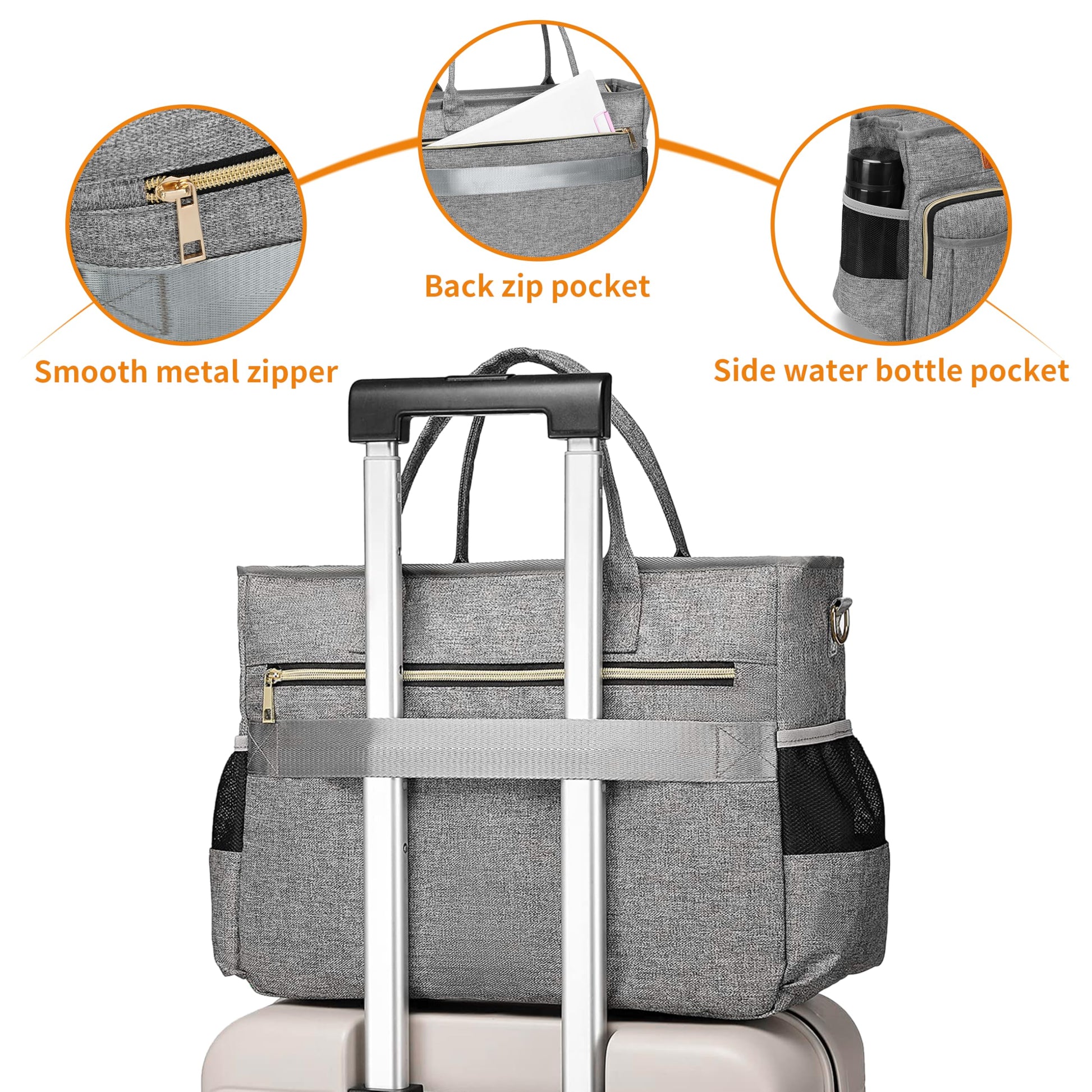 Laptop Tote Bag, Middle Size Computer Messenger Teacher Bag with 15.6'' Padded Laptop Sleeve Grey