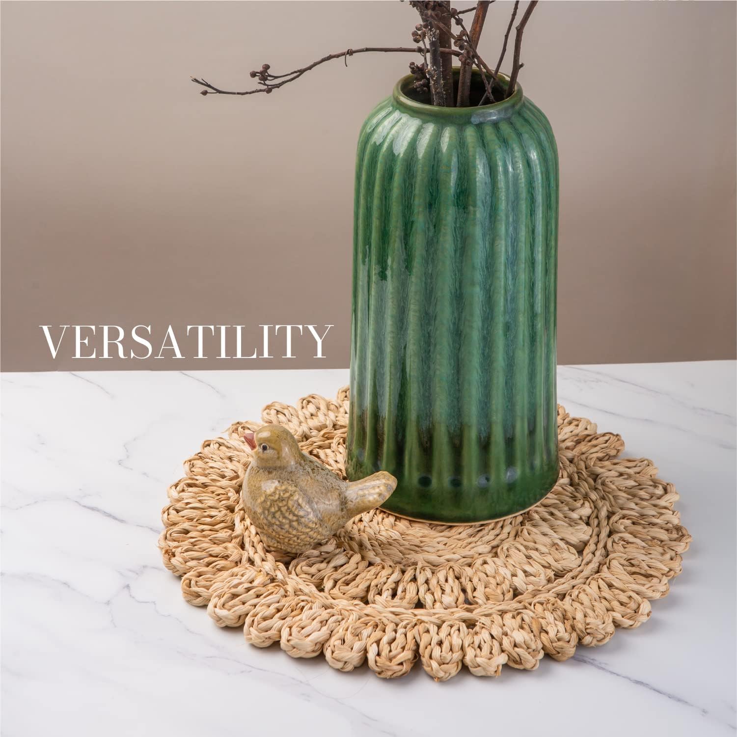 - š[Natural Material] It's well-made by 100% durable corn husk with heat resistance to endure the heat from hot pans and dishes, giving long-lasting product. Specially, each placemat has a layer of anti-slip glue for keeping hot plates.