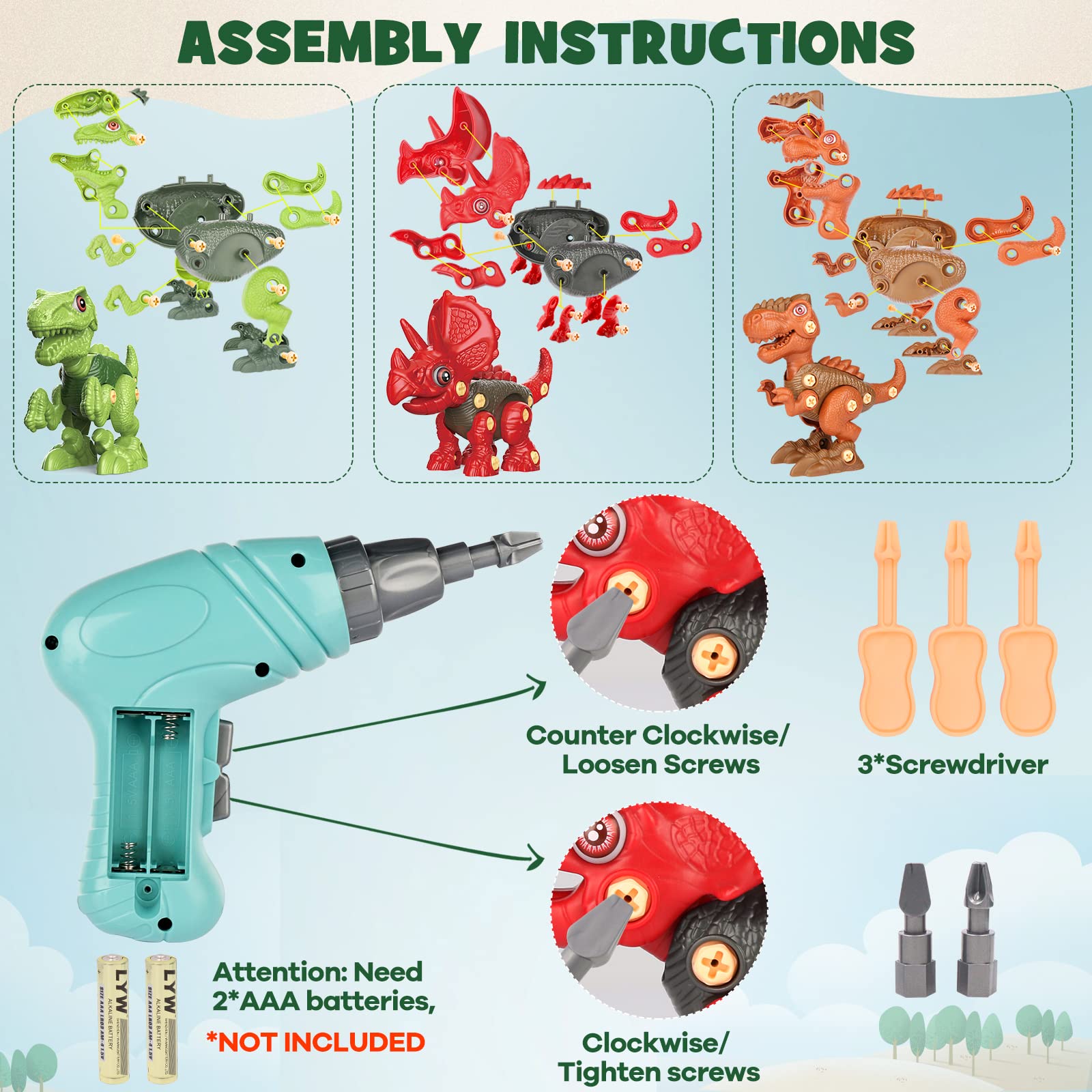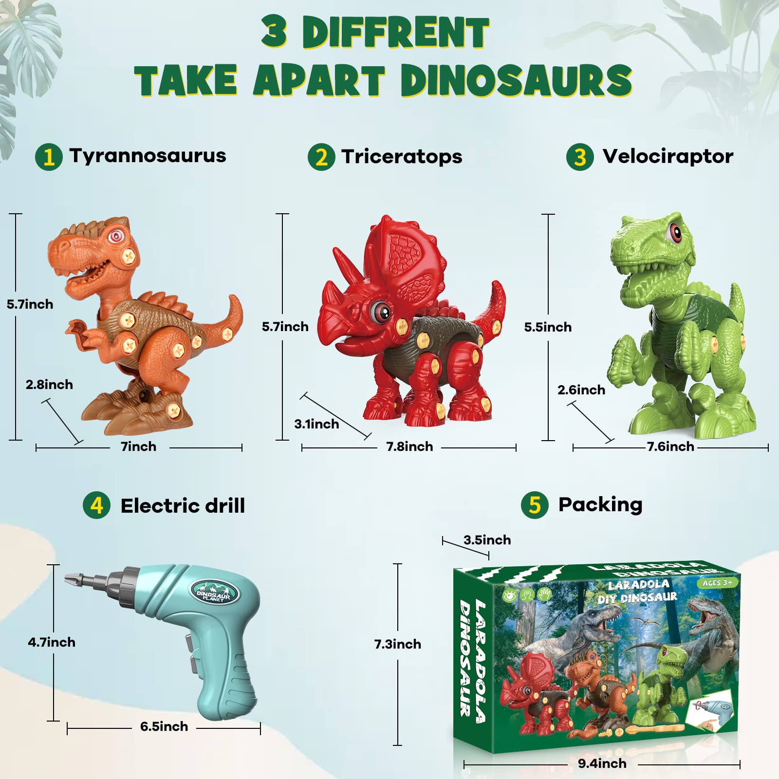 Laradola Dinosaur Toys for 4 5 6 7 8 Year Old Boys, Take Apart Dinosaur Toys for Kids 3-5 5-7 STEM Construction Building Kids Toy with Electric Drill, Party Birthday Gifts