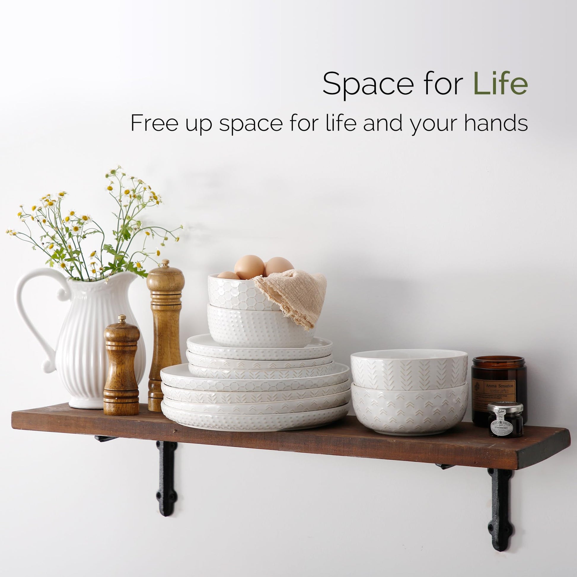 Lareina Ceramic Plates and Bowls Sets, Farmhouse Dinnerware Sets for 4, Stoneware Dish Set of 12, Scratch Resistant, Dishwasher & Microwave Safe, Vintage White