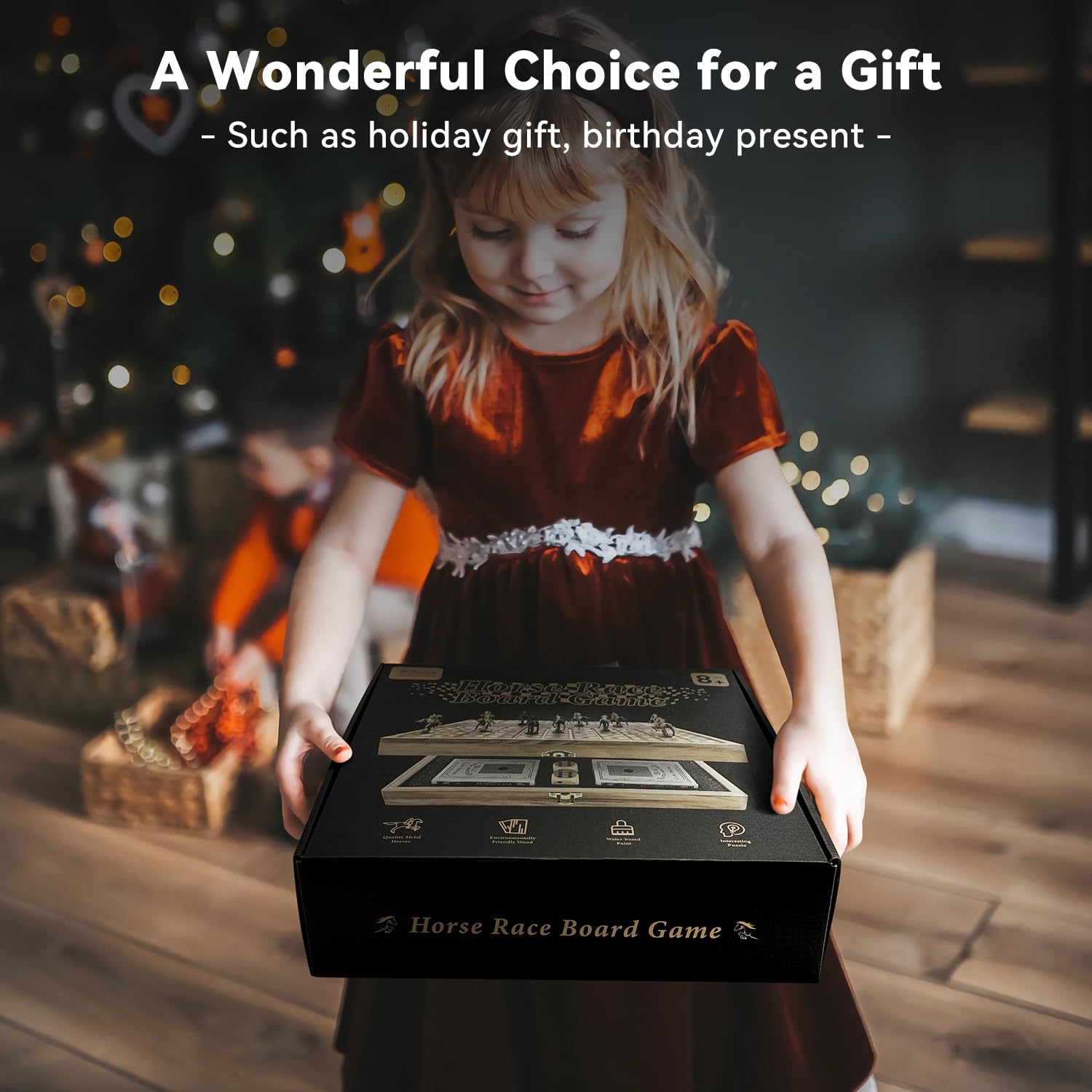- [A Great Present Idea] If you are looking for a unique and exciting present for the horse racing enthusiast? Our horse racing board game is an ideal choice! Especially for horse lovers and racing fans. With its beautiful design and exquisite color box packaging, it is sure to be a present they'll never forget