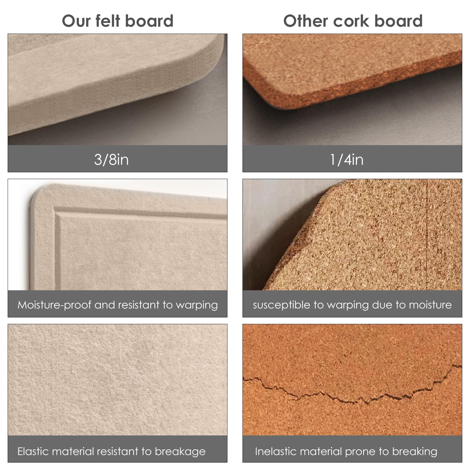 - Lightweight & Long-Lasting: Made from premium polyester fiber, this felt decor board is lightweight yet sturdy. With a 0.35-inch thickness, it holds push pins securely. The self-healing surface withstands repeated use, keeping it looking like new.