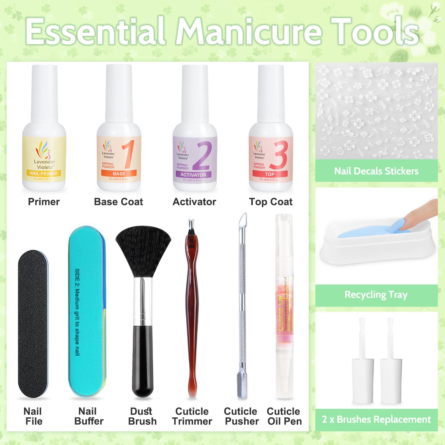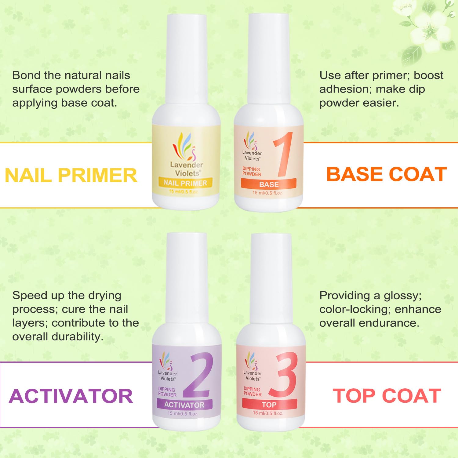 - Long-Lasting Results: Enjoy up to 28 days of chip-resistant, durable nails with the Lavender Violets nail dip powder kit. There’s no need for a nail lamp, as the dip powder dries quickly and efficiently.
