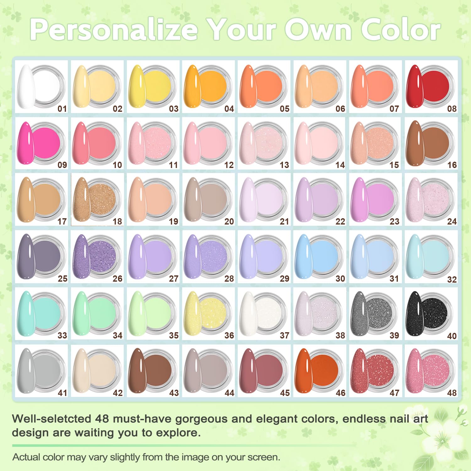 - Easy to Use: Designed for simplicity, this dipping powder nail kit offers an effortless application process. Compared to traditional acrylics, this dip powder starter kit saves you about 30% of your time. With 48 different nail powder colors to choose from, you can easily express your unique style.