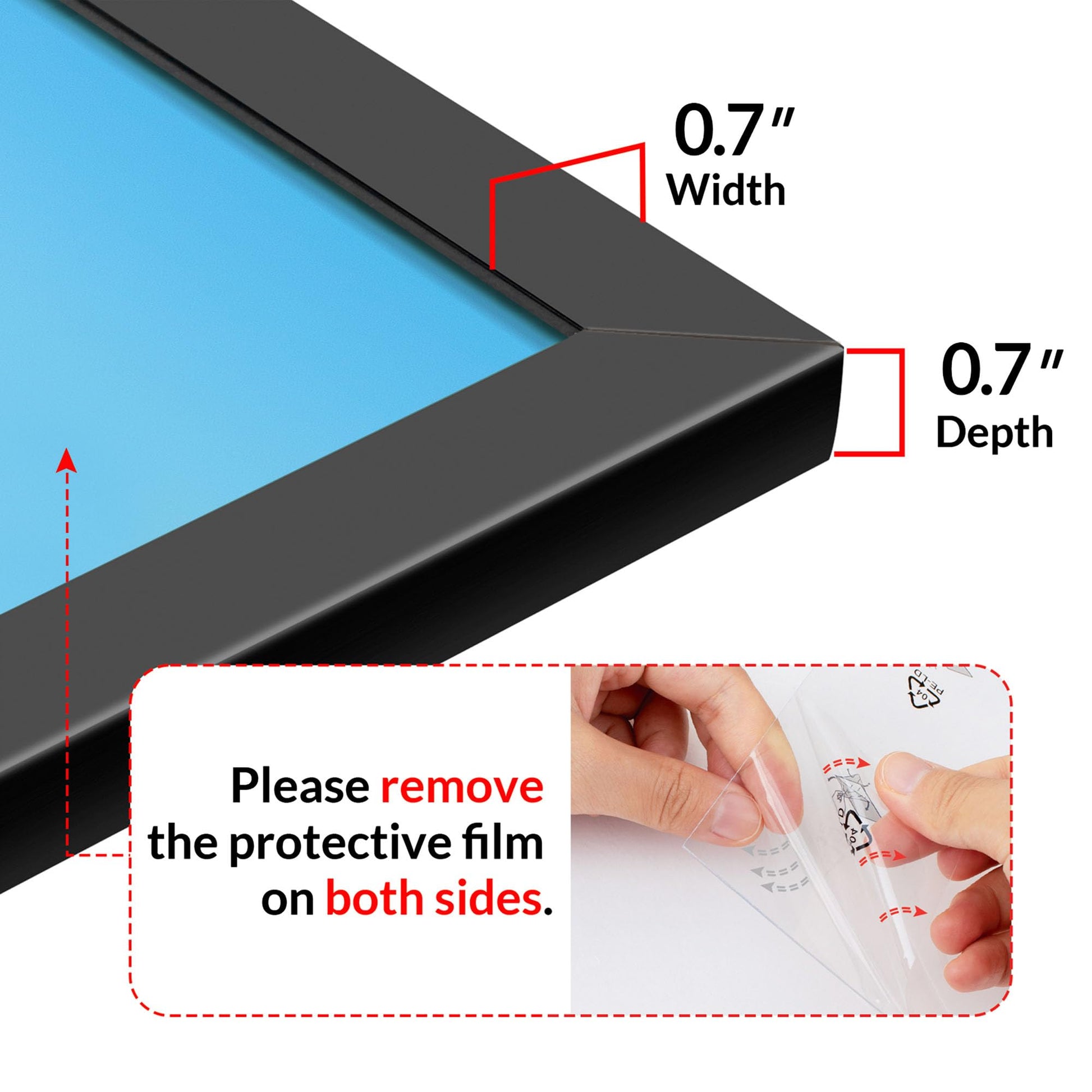 - PROTECTIVE PACKAGING: The 22.375x34 picture frames come with special corner protectors and plastic sealing. Before using, please remember to tear off the double-sided protective film on the plastic panel to get a clear photo effect.