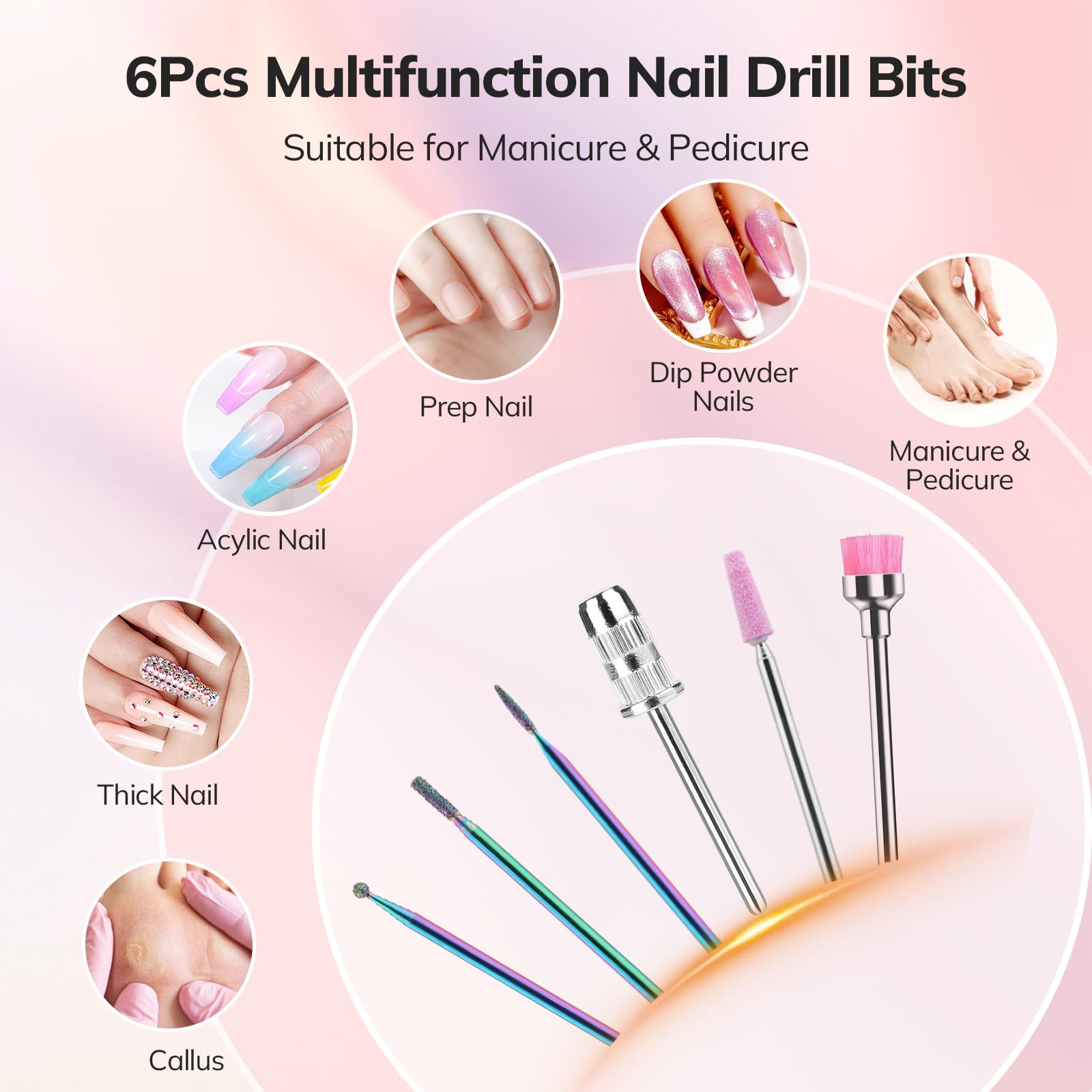 - Versatile Kit for Complete Nail Care: Unleash your creativity with our comprehensive kit featuring 6 high-quality 3/32” nail drill bits. From grinding to polishing and shaping, it’s your essential tool for professional-quality hand and foot care treatments.
