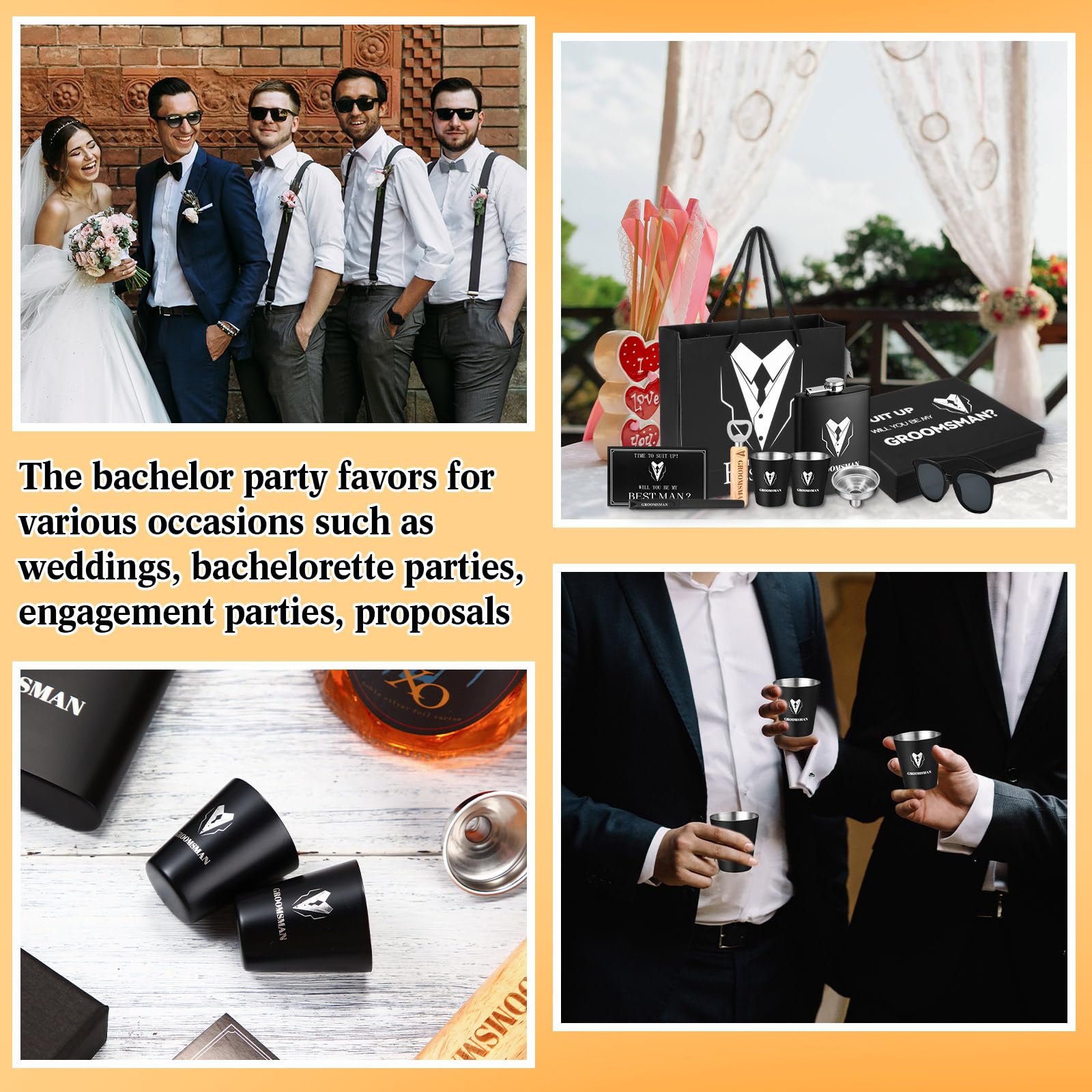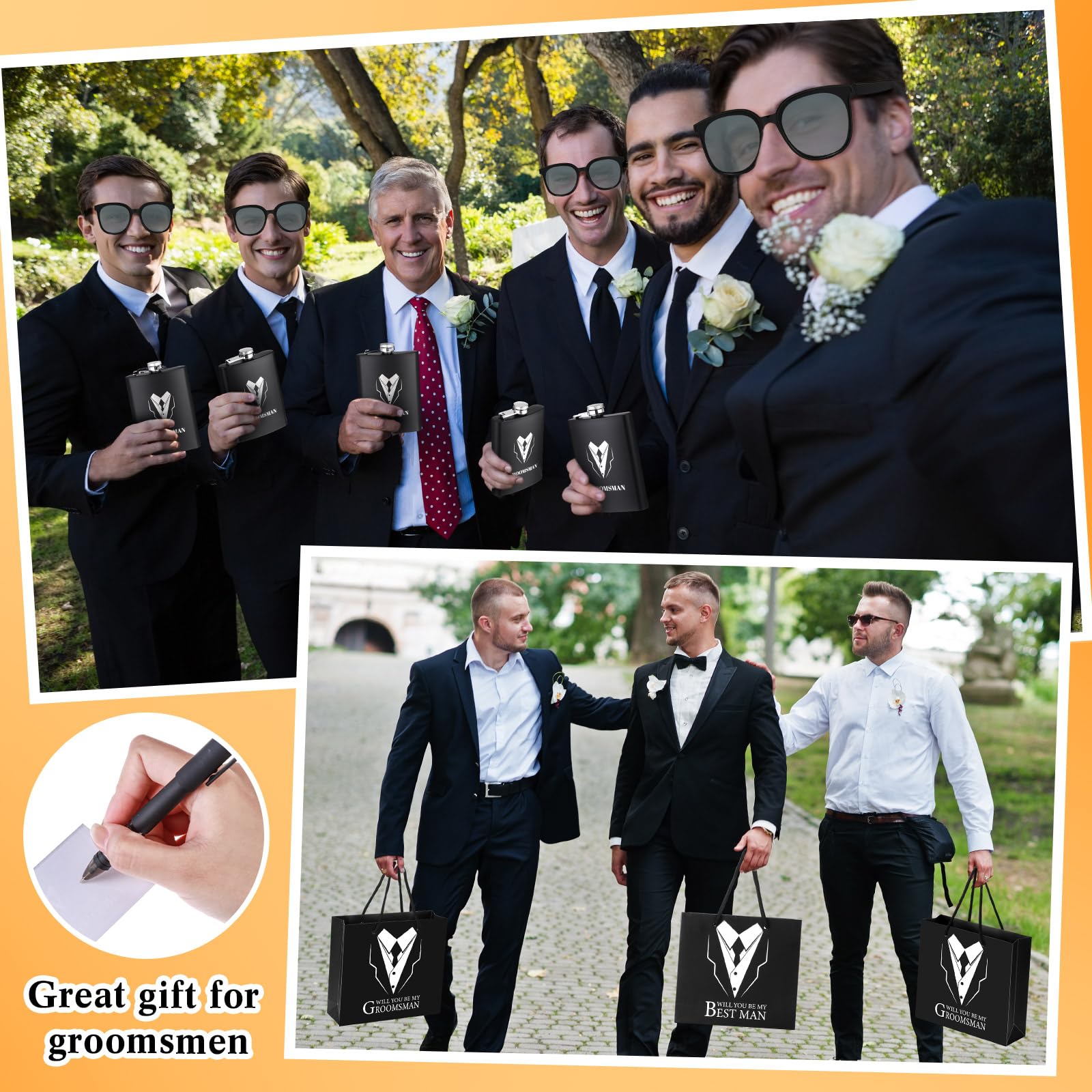 - Comprehensive Groomsmen Gift Set: includes 6 pcs 8 oz flasks, 12 elegant stainless steel shot glasses, 6 wooden bottle openers, 6 pens, 6 sunglasses, 6 thoughtful cards, 6 gift boxes, 6 funnels and 6 convenient bags, making it an ideal gift choice for your groomsmen