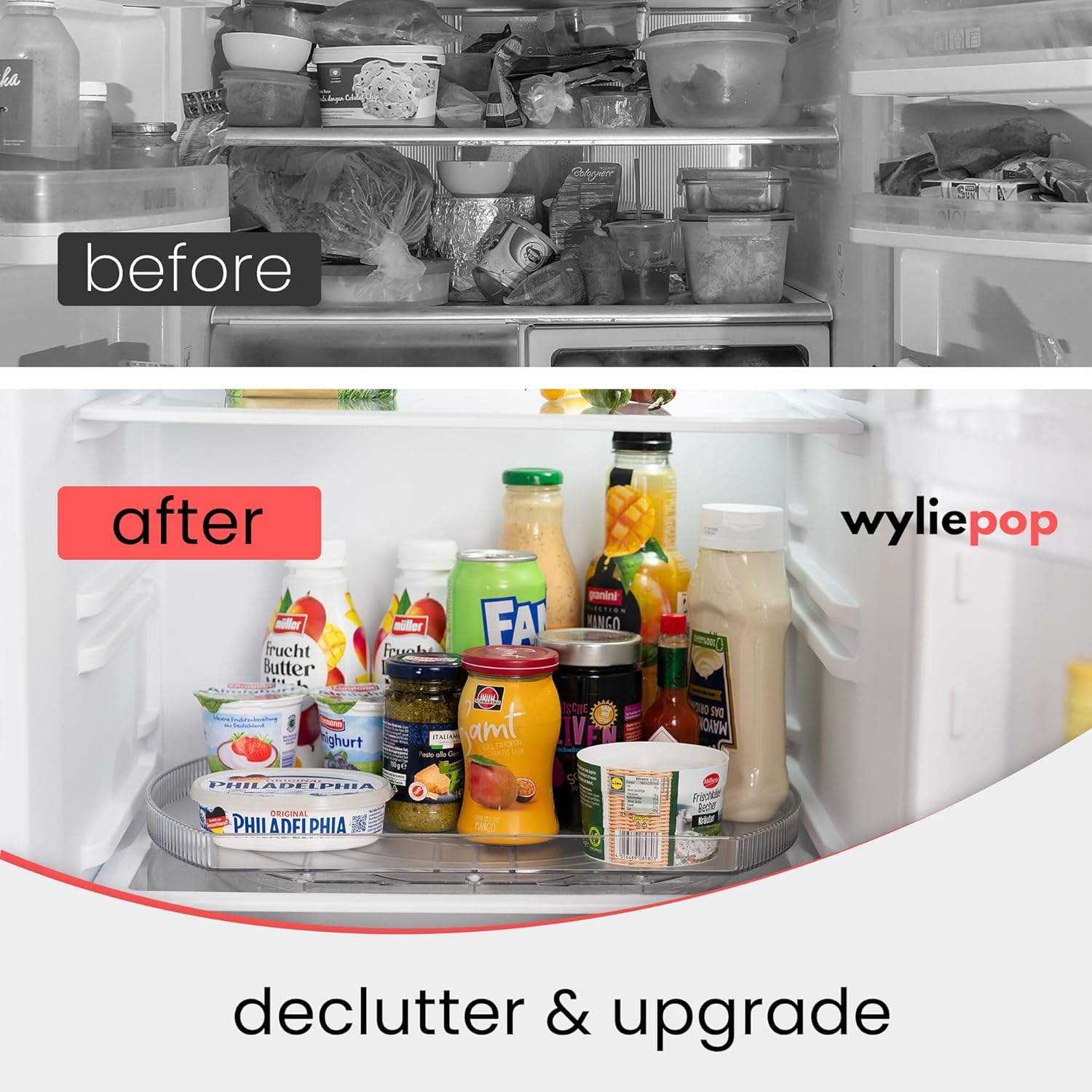 - Durable PET Construction for Long-Term Use – Built from high-quality PET plastic, this refrigerator Lazy Susan organizer holds up under heavy items without warping. The clear Lazy Susan turntable makes it easy to see everything at a glance—perfect for cabinet or pantry organization too.