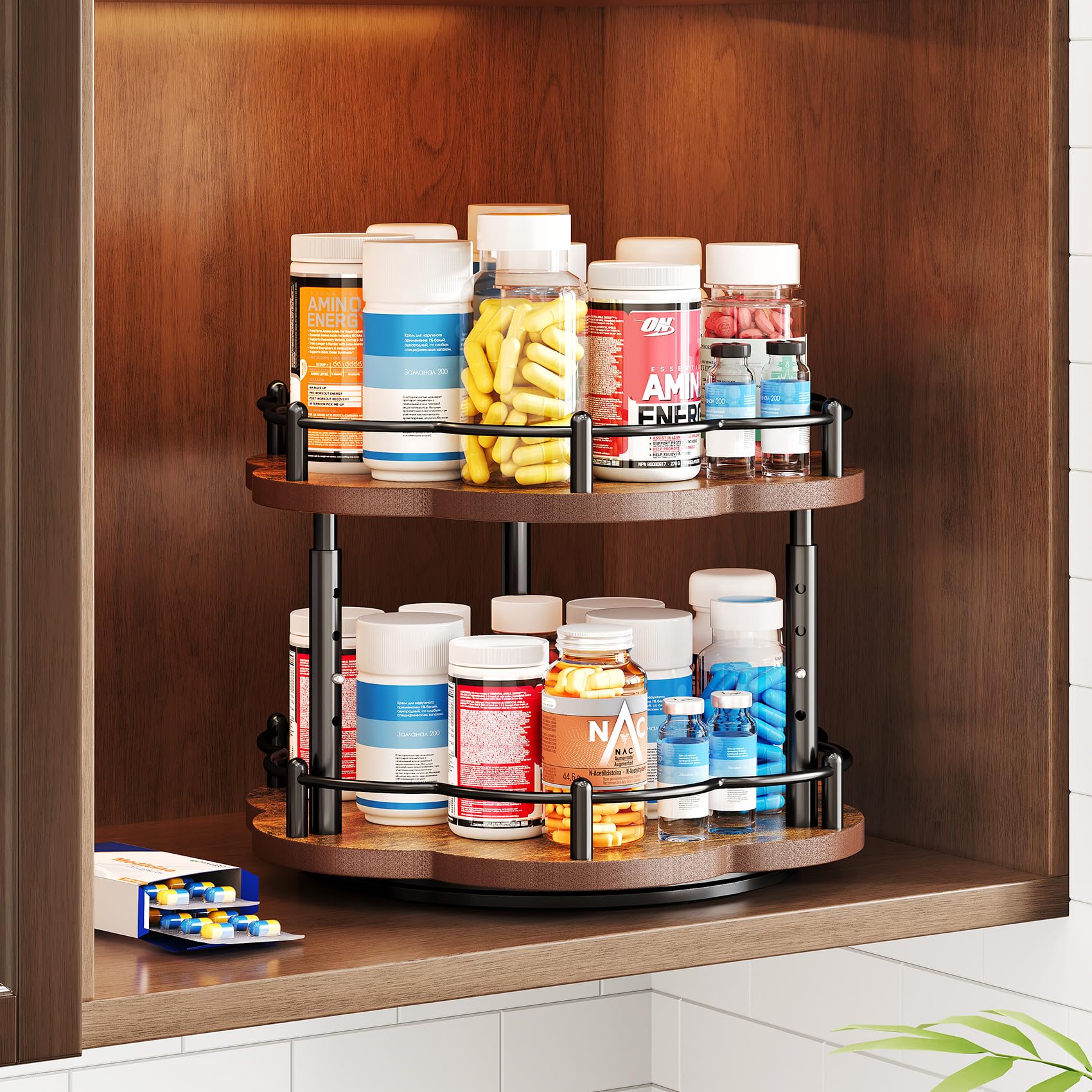 - 360° Rotation for Seamless Access: This Lazy Susan spice rack is equipped with a smooth rotating turntable that enables 360° rotation inside your wall cabinet. It eliminates blind spots, making all your seasonings easy to reach from any angle.