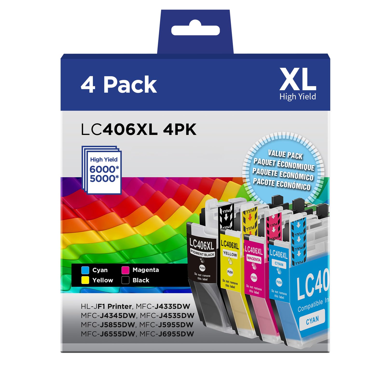 LC406XL Ink Cartridges Compatible for Brother LC406XL LC406 High Yield Work with Brother MFC-J4535DW MFC-J4335DW MFC-J5855DW MFC-J6555DW MFC-J6955DW Printer(Black, Cyan, Magenta, Yellow, 4Pack)