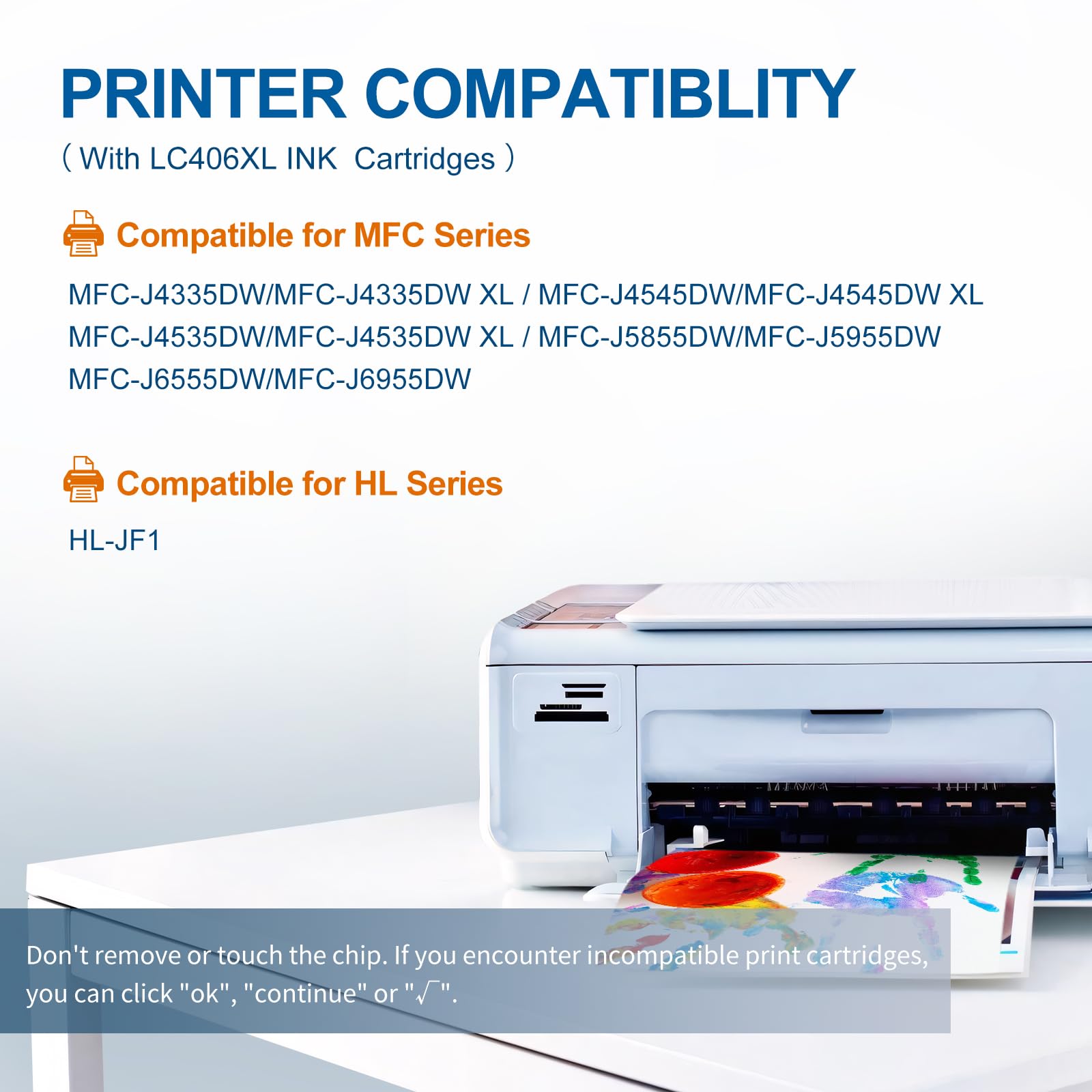 - Pages Yield: Up to 6000 Pages per Black LC406XL LC406 ink cartridges for brother printer, 5000 Pages per Color LC406XL LC406 ink cartridges for brother printer (at 5% coverage of A4 paper)
