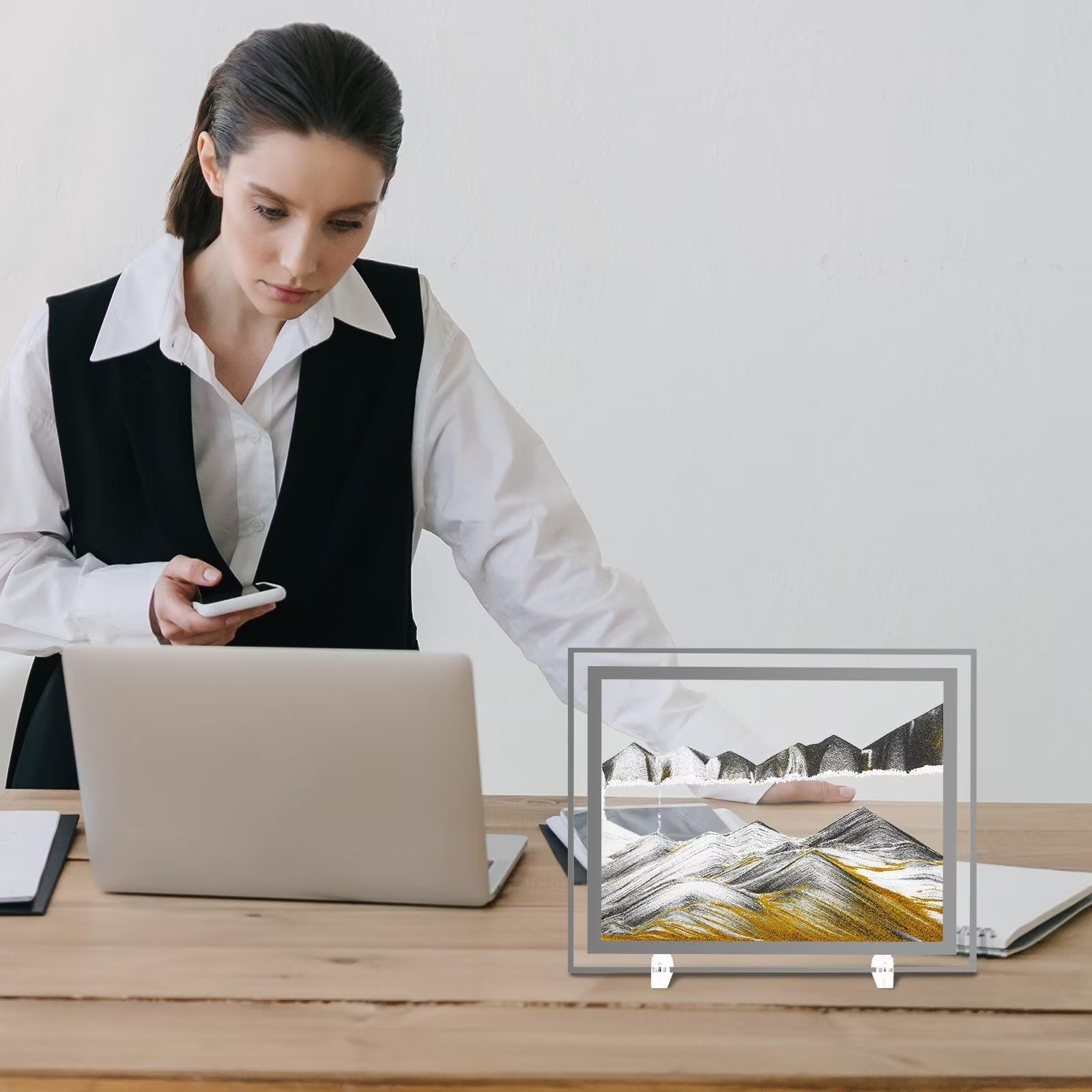 - DESK SAND ART - Perfect for home and office decoration. Sand art pictures will bring a calming, natural and wonder sense to your office and house. 3d color quicksand decor