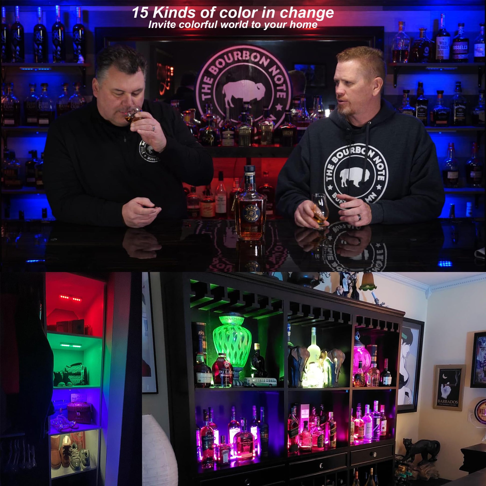 LDOPTO Under Cabinet Lighting Wireless with Remote, 48 LED Rechargeable Lights, Kitchen Counter Lights Dimmable, RGB Bar for Shelf, Car, Hallway, 15 Color Changing, 6 Pack