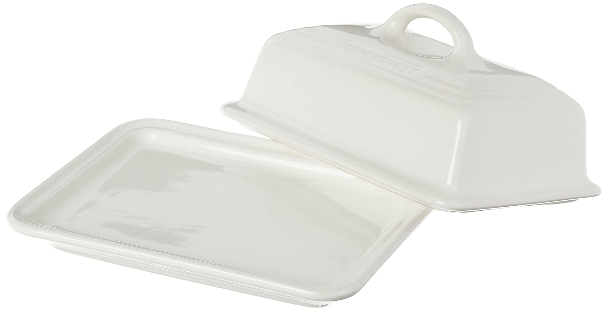 Details: Decorative yet functional, this stoneware butter dish can go from refrigerator to microwave to table. The European style is designed to hold two sticks of butter.