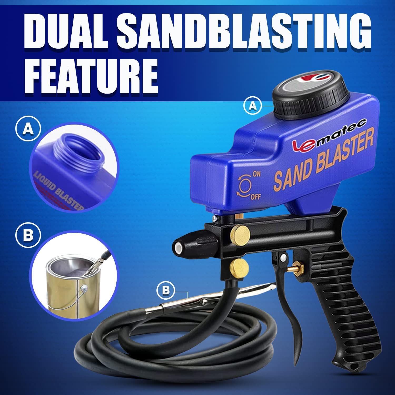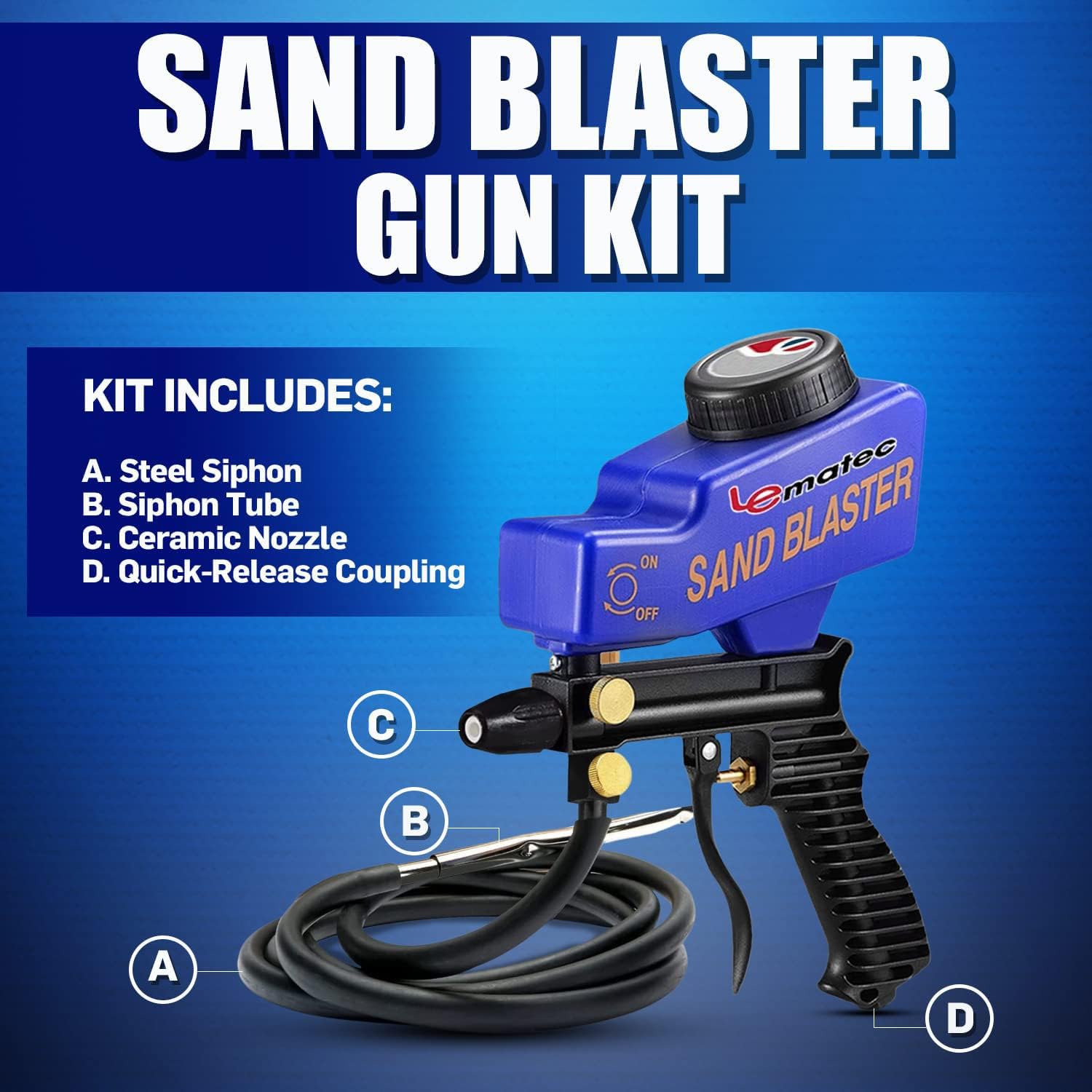 LE LEMATEC Portable Sandblaster Gun Kit, Air Compressor Sand Blaster, Paint & Rust Remover, Abrasive Media & Soda Blaster for Metal, Wood, Automotive & DIY Surface Prep, AS118-2C