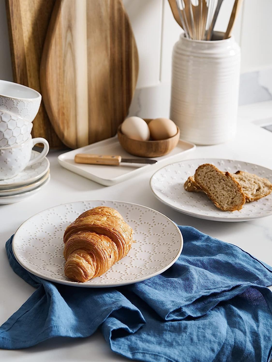 - Service For 4: The Joanna dinnerware set includes 10" dinner plates x 4, 8" salad plates x 4, 6“soup bowls x 4(22 oz) and 8“pasta bowls x 4(12 oz), good for enjoying salads, pastas, soups, fruits and more with friends and family