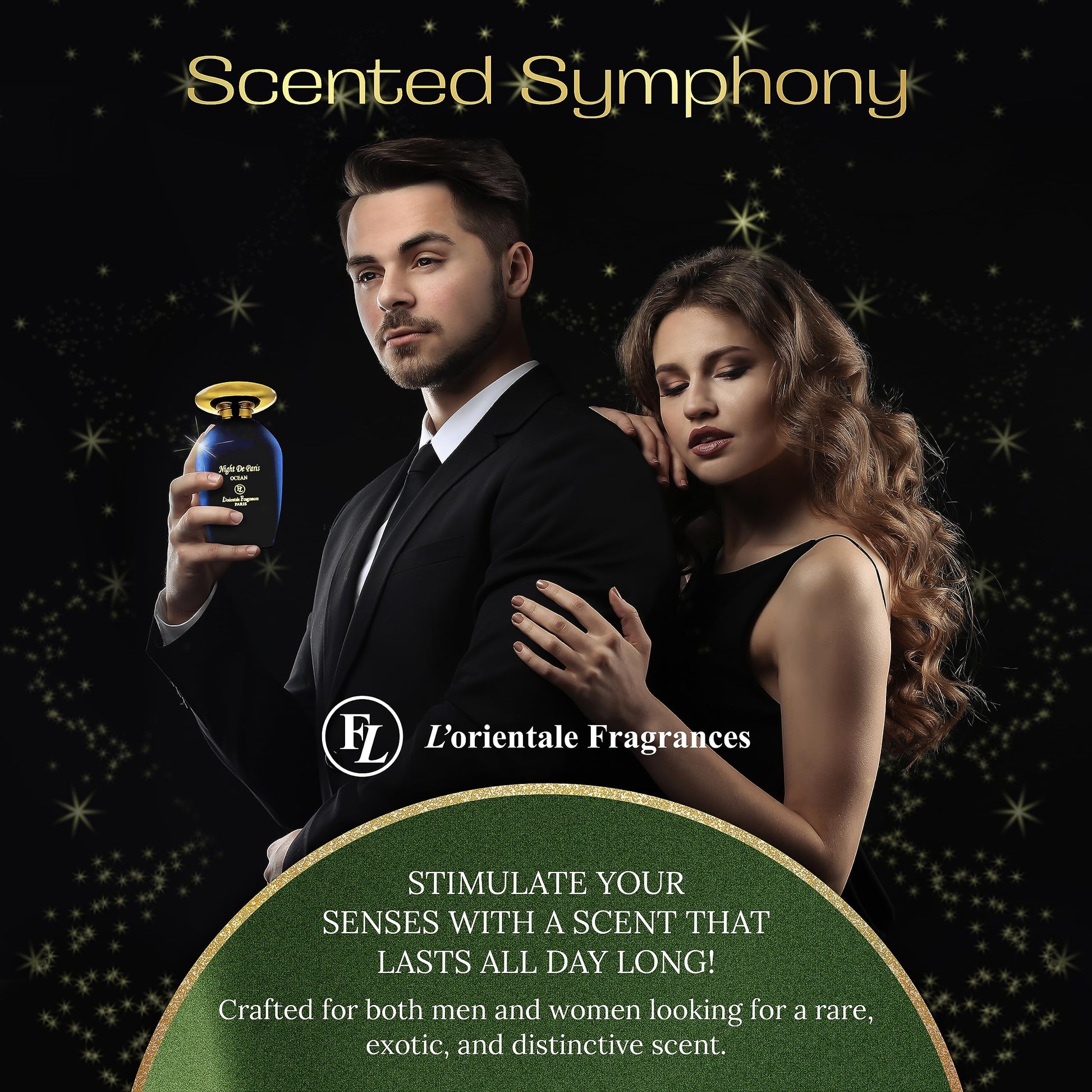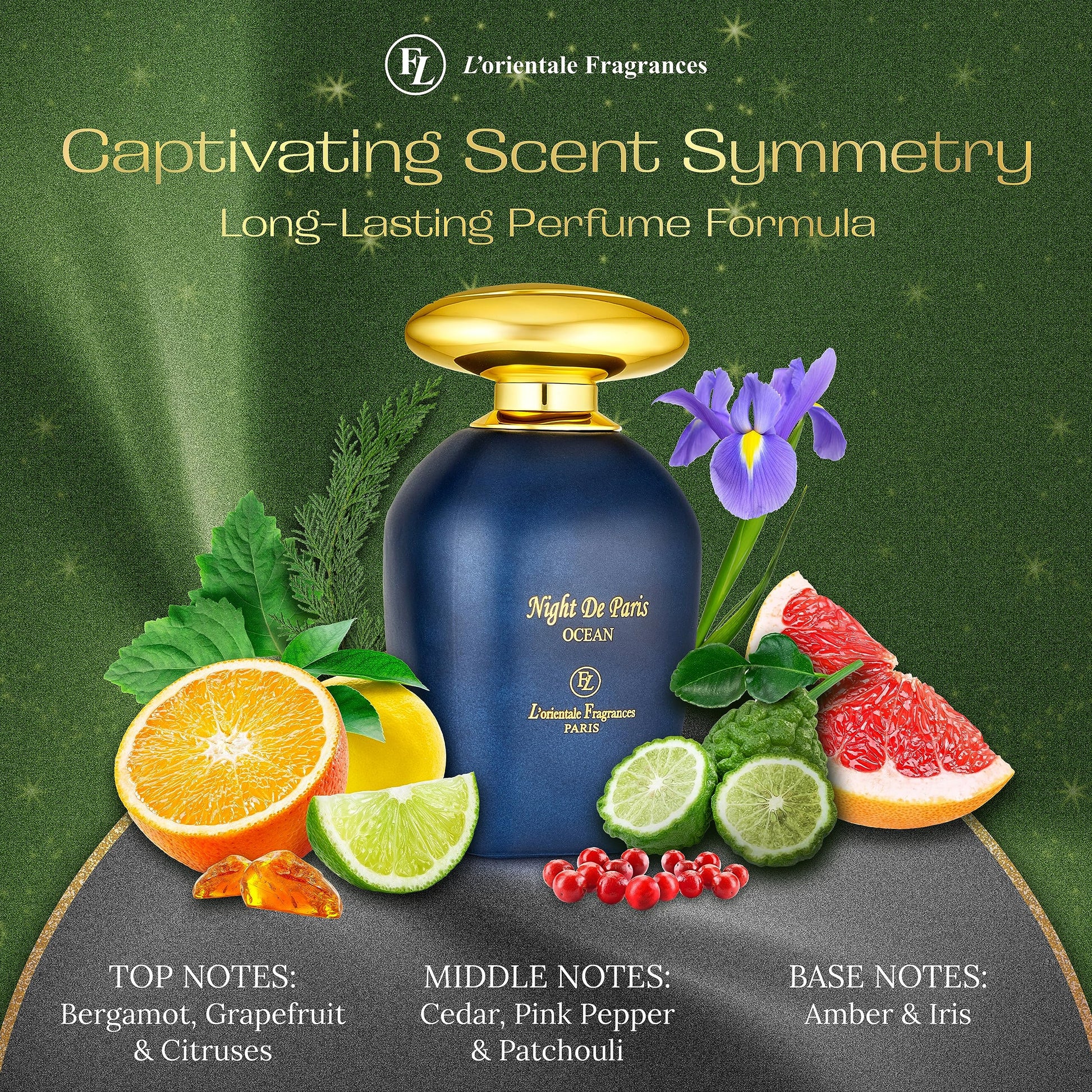 L'Orientale Fragrances Night De Paris Ocean 100ml / 3.3oz - Oil-Based Perfumes for Women & Men, Unisex Aromatic Aquatic Eau de Parfum w/Bergamot - Long-Lasting Up to 24 Hours, Ideal for All Seasons