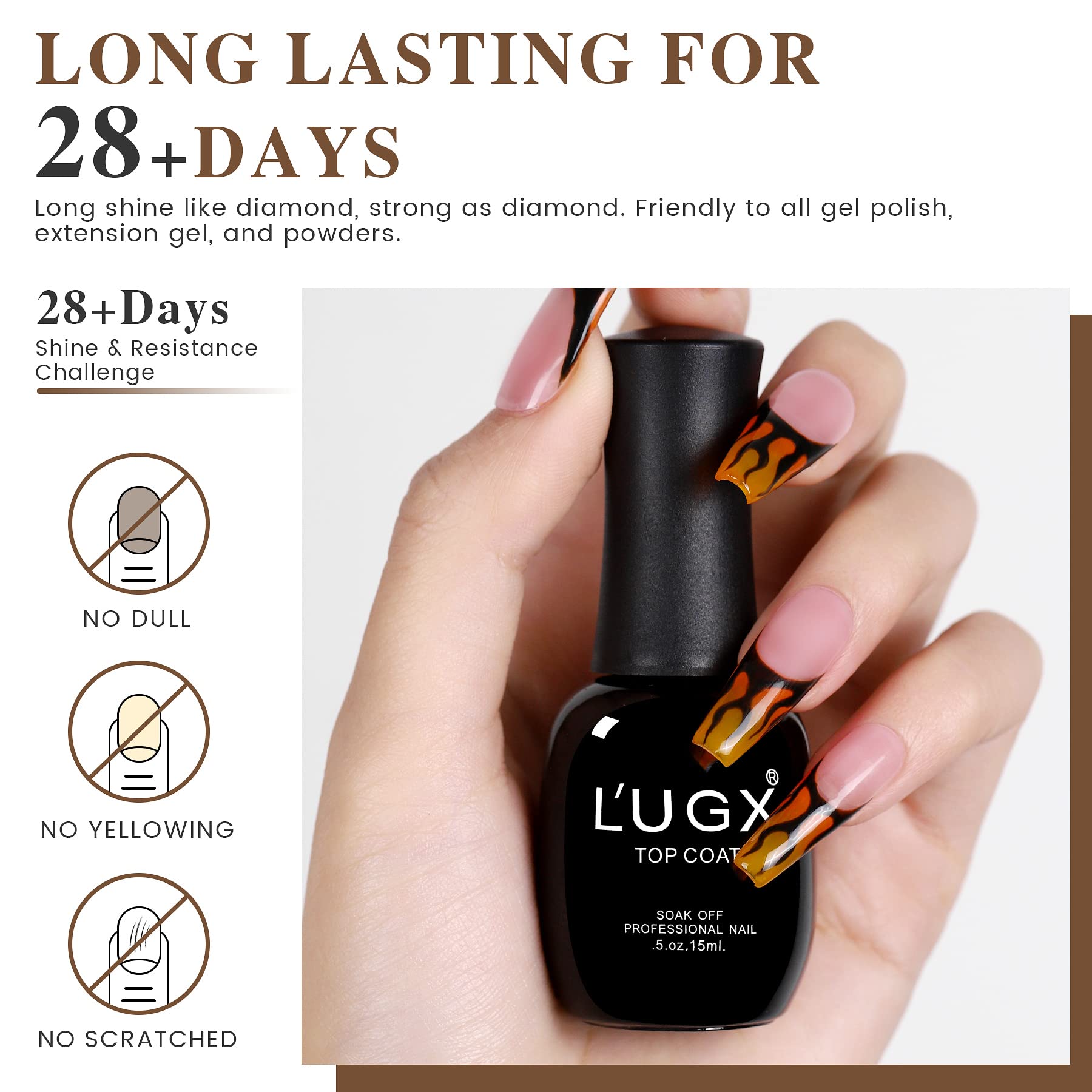 - 【 LONG-LASTING】Gel Nail Polish Base and Top Coat can make your gel last for over 28 days with a proper application due to its wear resistant feature. Flexible top coat gel nail polish make your nails glossy shine and avoid nicks, chips and smudges.