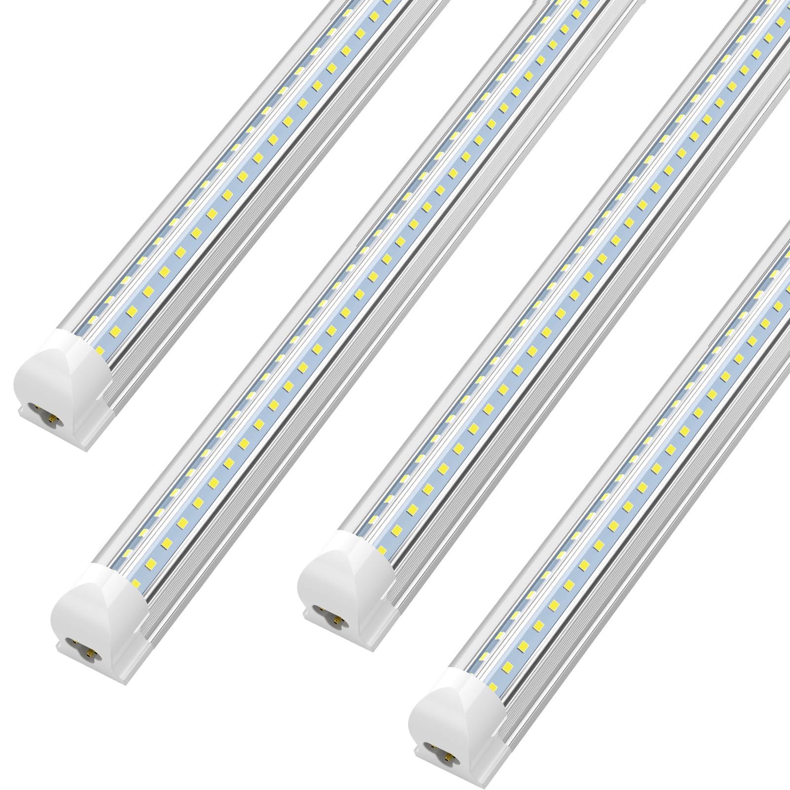(Pack of 4) Linkable LED Utility Shop Lights for Garage, 6FT, 60W, LED Tube Ceiling Light T8 Integrated Single Fixture, 6000K, 8000LM Daylight V Shape, Basement, Offices, Clear Lens, Plug and Play