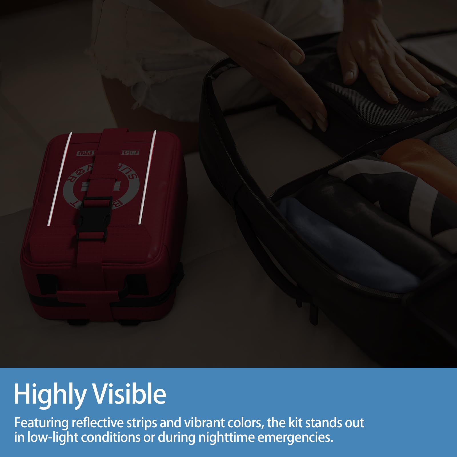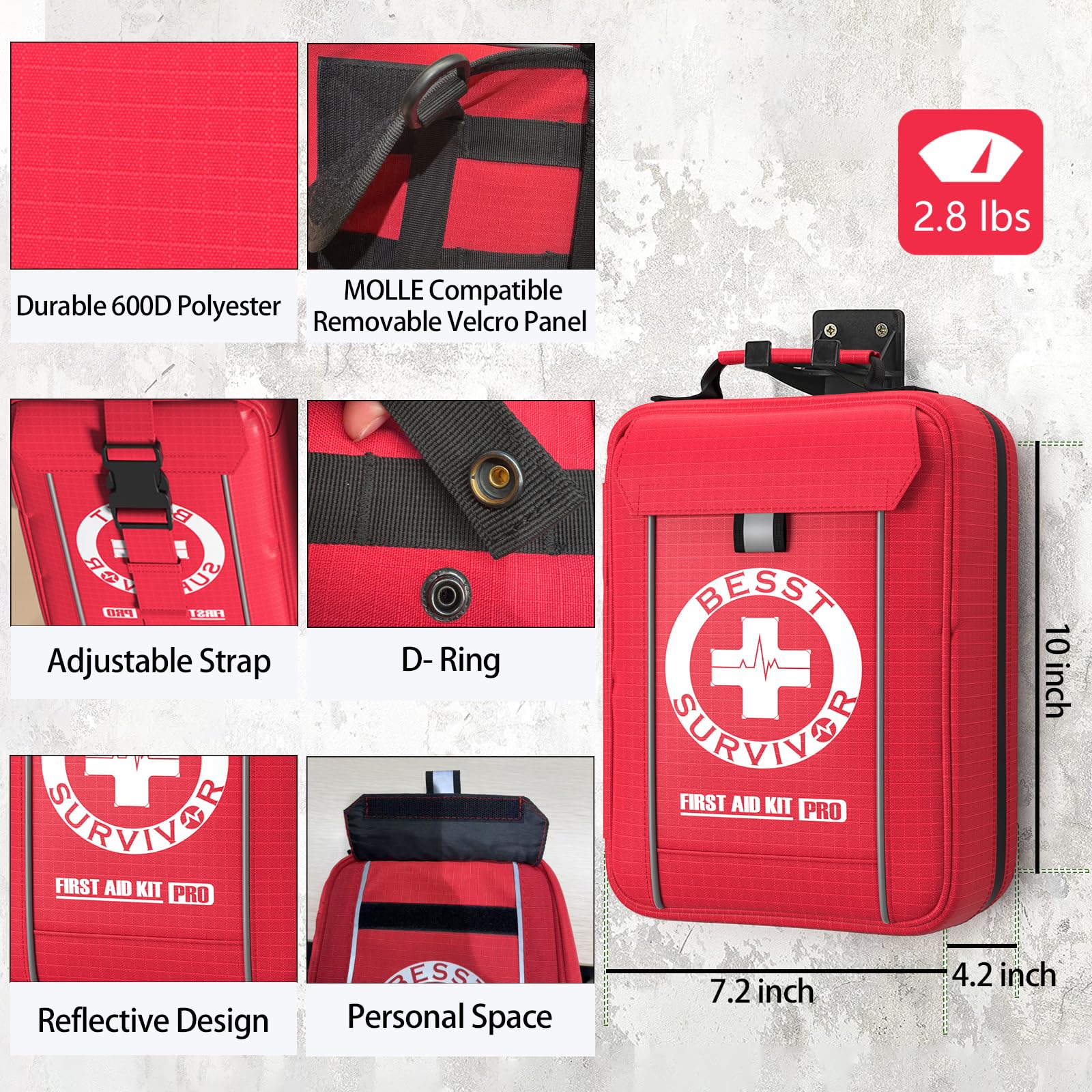 - 【Removable MOLLE System】Unmatched Versatility- you can carry this first aid kit on your tactical backpack, vests or car. Once attached via the MOLLE system, the first aid kit stays firmly in place. The reliable connection gives you peace of mind, knowing that your life-saving supplies are always within arm's reach